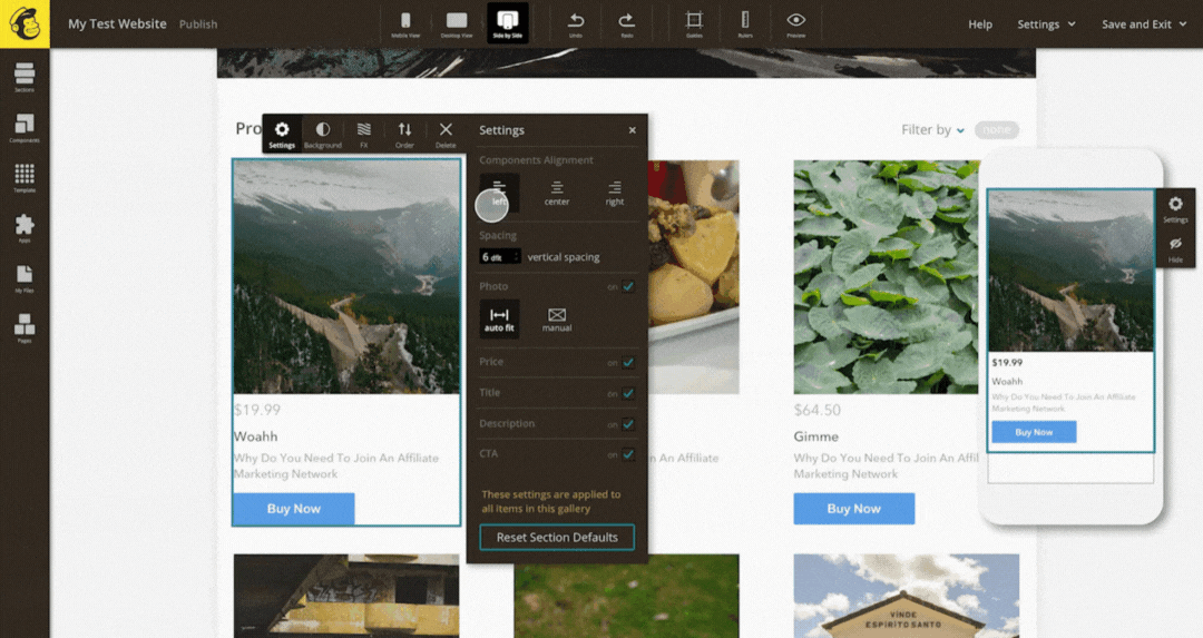 Through extensive research and competitive analysis, we were able to examine patterns and distill down how other ecommerce players at the time were accomplishing these goals, and the most effective way to optimize that job. By providing users with easily uploadable content and preset themes and templates, we were able to pack a lot of power into a few keystrokes – ideal for novice marketers and folks creating ecommerce pages on the fly.
